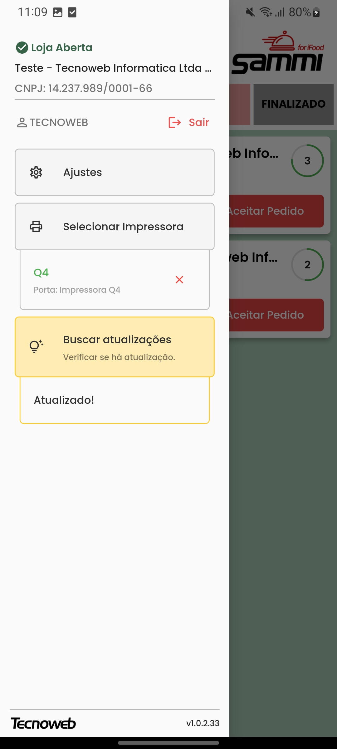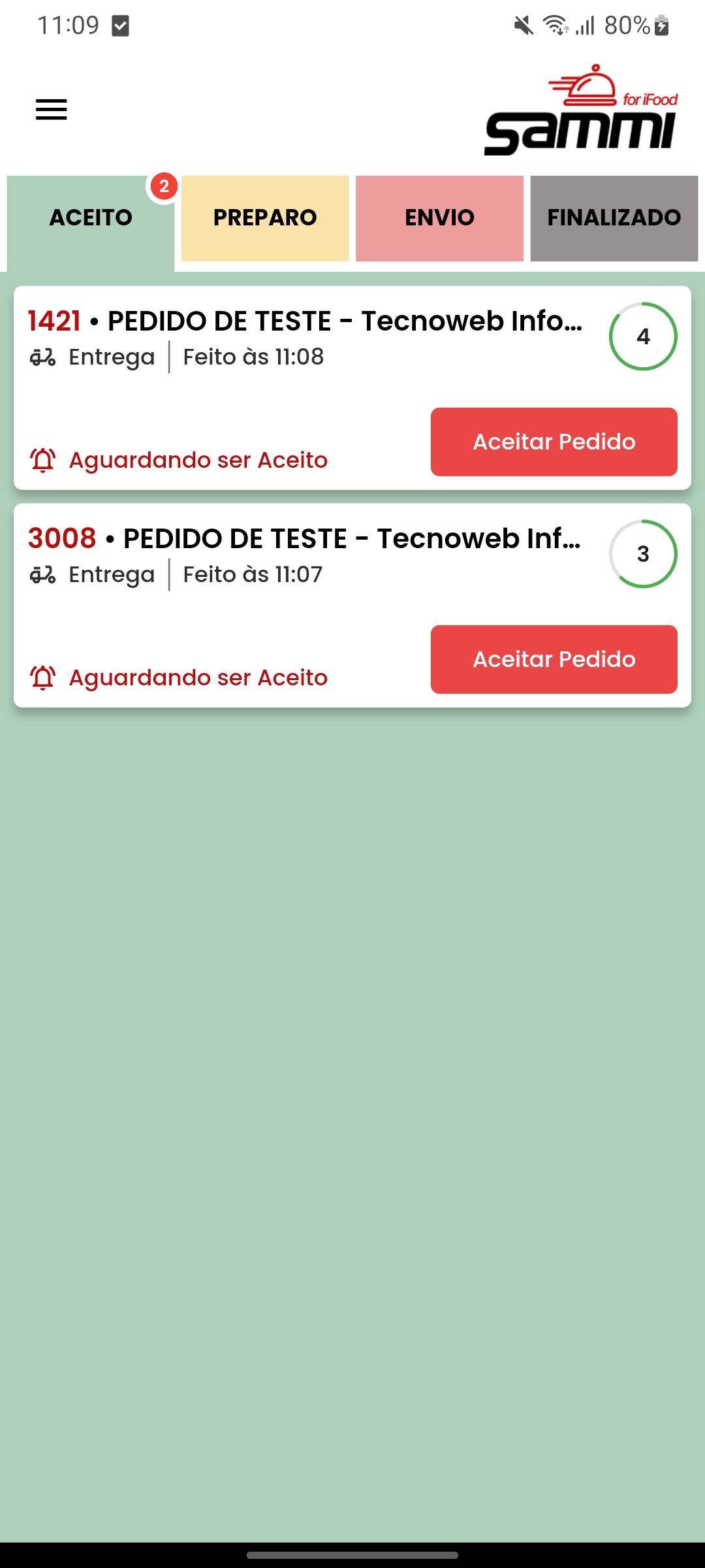 Sistema Sammi For Ifood Desenvolvido para: